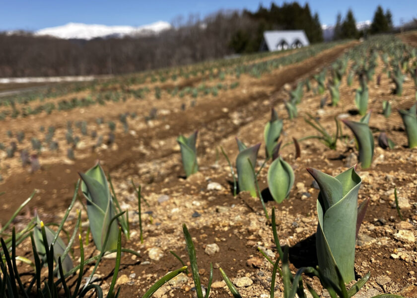 チューリップの芽の成長が、1日ですくすくと育っているのがわかるくらいのペースです。今のところ、GWに見頃になる予想です。