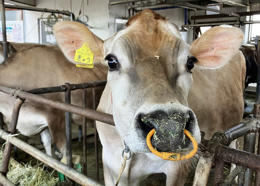牧舎内では瞳がぱっちりしたジャージー牛さんたち。人懐っこくて可愛い性格です。