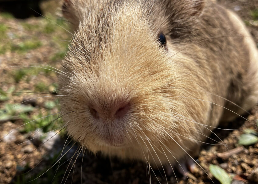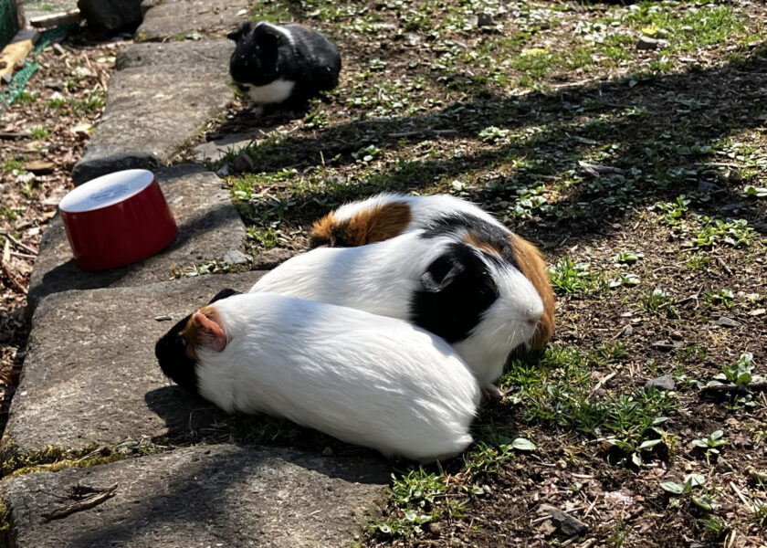 ちょうど良いくらいの気温なので、お外で日向ぼっこするモルモットのころっけちゃん。