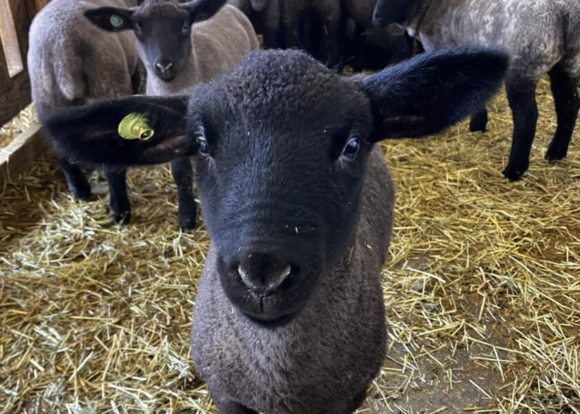 羊のお部屋では、親離れの練習中の仔羊さんがメェ〜メェ〜と賑やかです。慣れてきたのか、人の方へも近づいてきてくれるようになりました。
