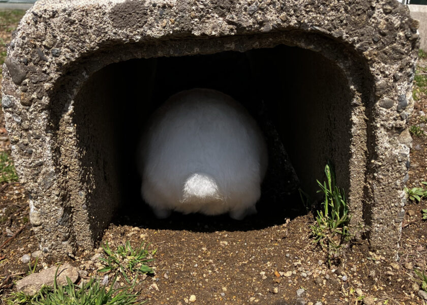 うさぎ広場では、真っ白なお尻がU字溝の遊び場からひょっこり♪