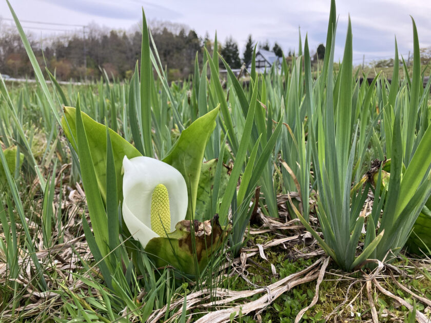 かわいい水芭蕉もようやく咲きました。数は少ないですが「ゆきやなぎ橋」の横の木の階段から湿原へ降りていくと、ひっそりと咲いていますよ〜!