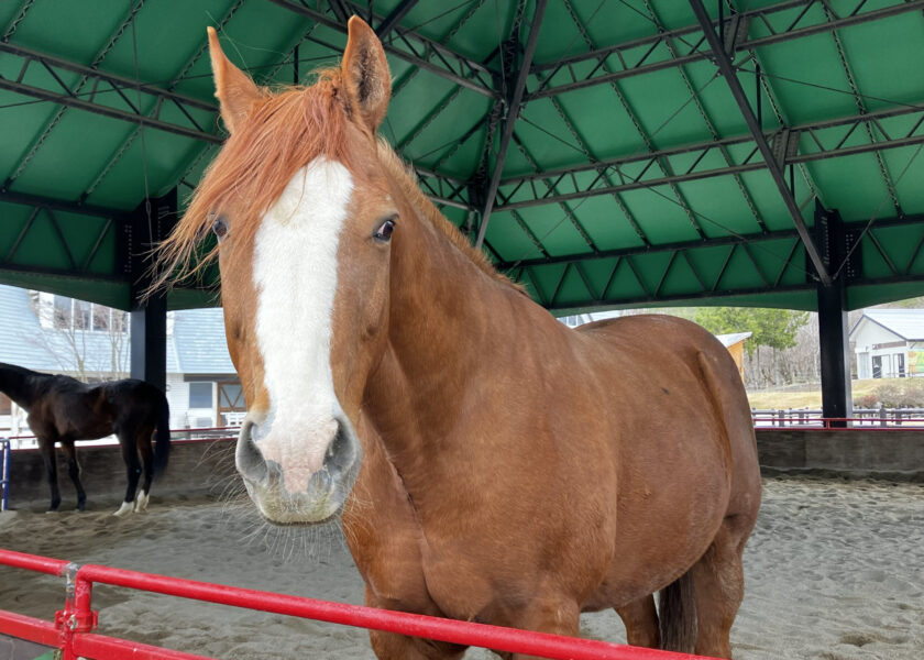 今年のグリーンシーズンのポスターにも登場している、ウマのロキシーちゃん。
